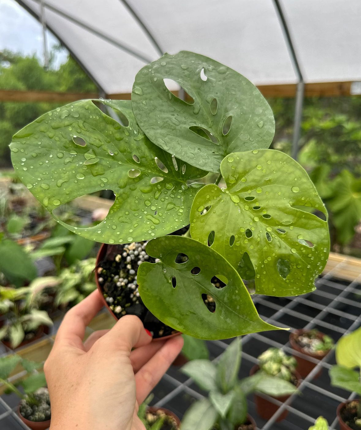 Care: Provide your Amydrium with bright light, but no direct sun. Water thoroughly to ensure that all the roots and soil are wet then discard any excess water sitting in the bottom of the pot or drip tray. Soggy soil will cause yellowing leaves and/or fungus, but don't allow potting medium to dry out completely.