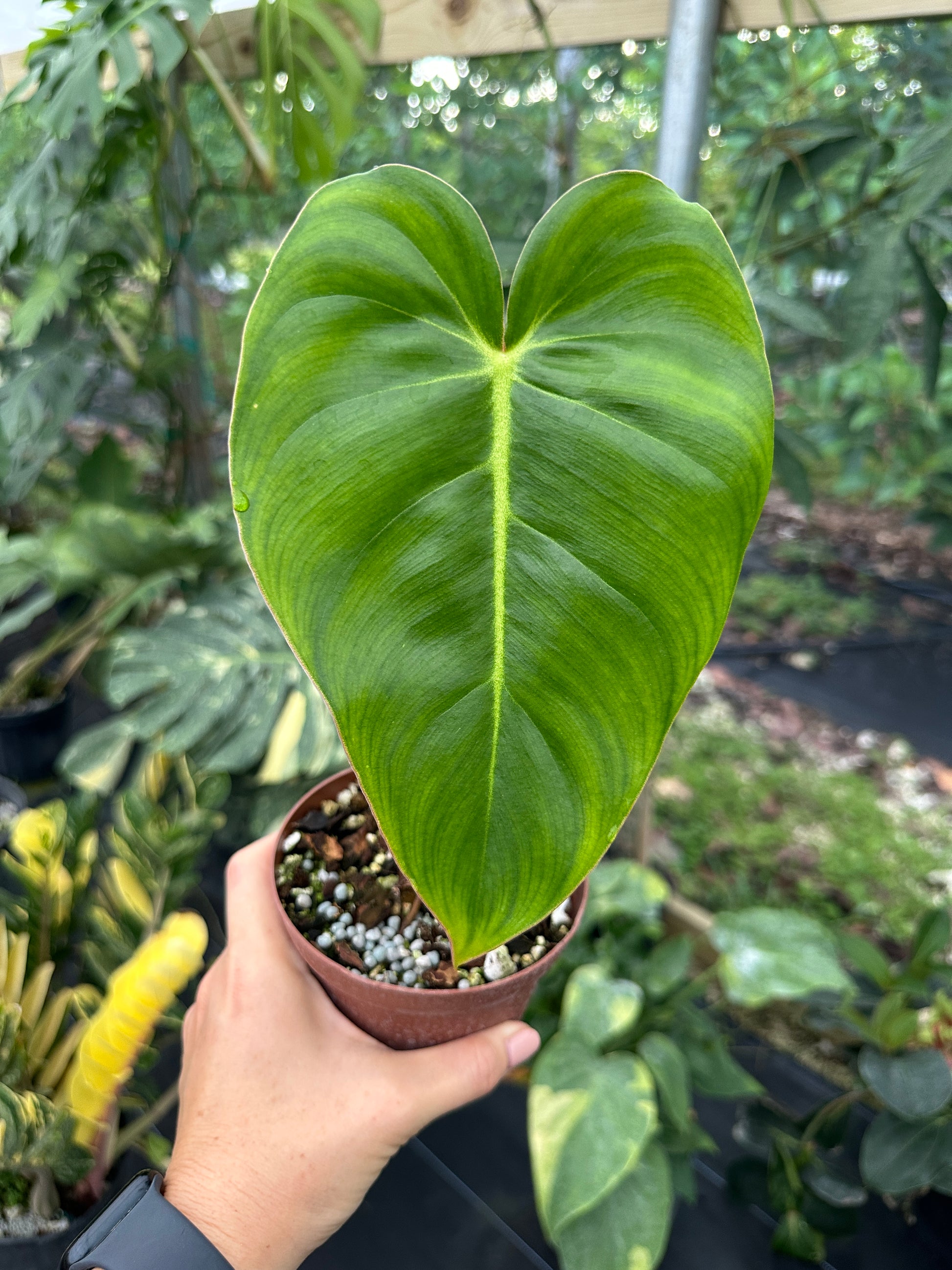 Care: Provide your Philodendron with bright light, but no direct sun. Water thoroughly to ensure that all the roots and soil are wet then discard any excess water sitting in the bottom of the pot or drip tray. Soggy soil will cause yellowing leaves and/or fungus, but don't allow potting medium to dry out completely. If repotting use a well draining and chunky mix.