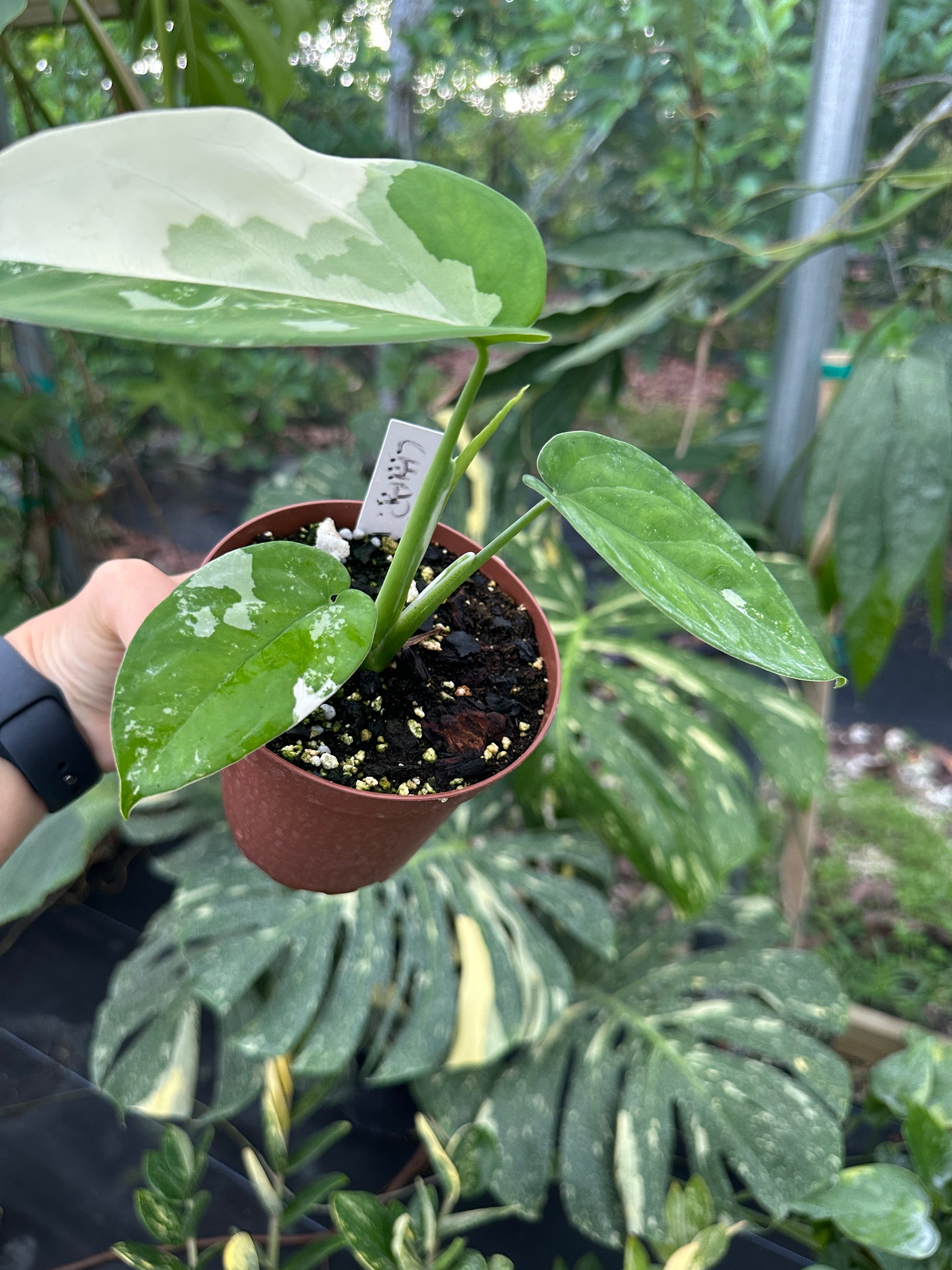 Care: Syngonium chiapense variegated likes bright indirect light, well-draining soil and prefers a moderate amount of humidity. Allow your plant to dry out between waterings.