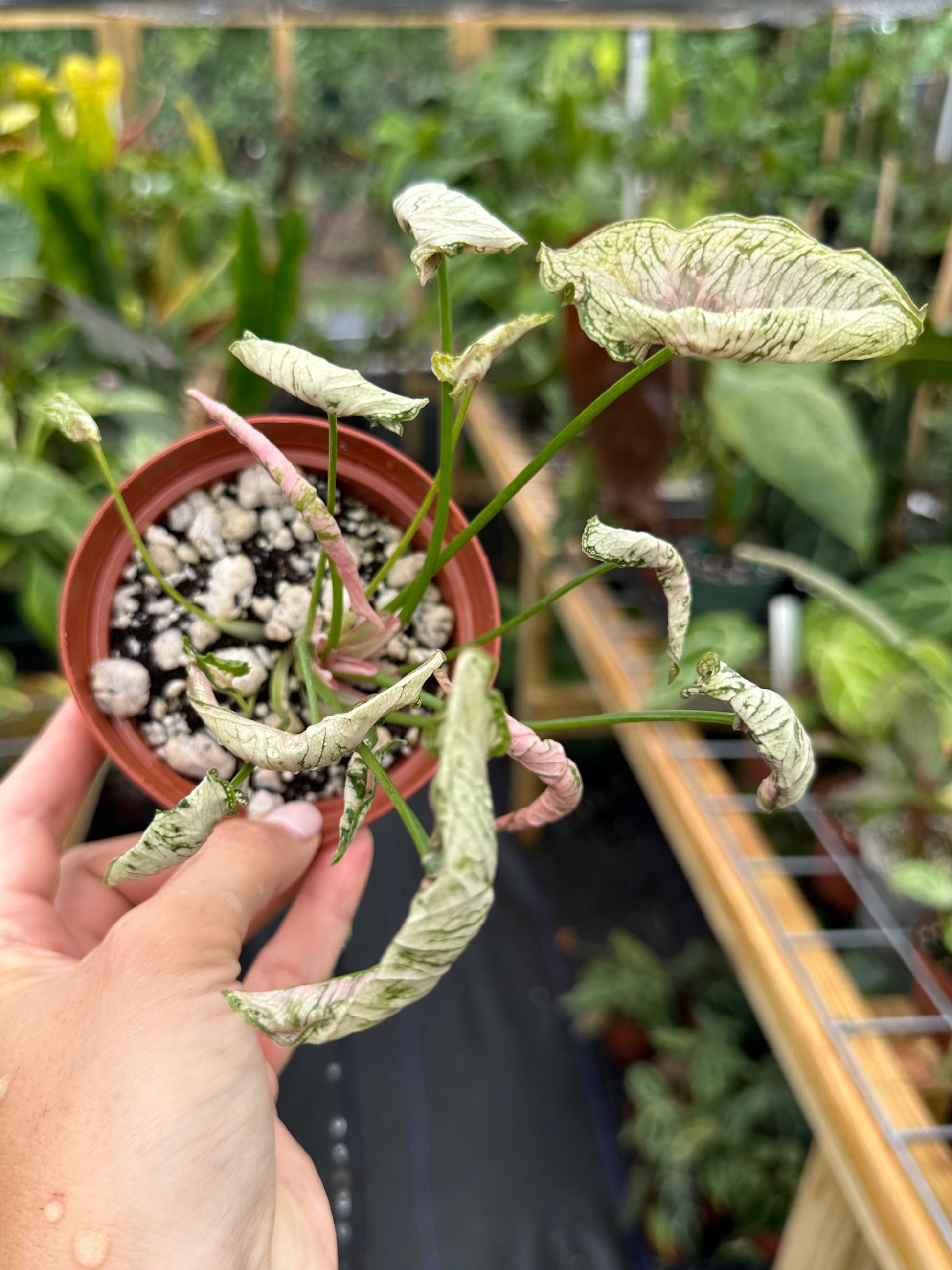 Care: Provide bright indirect light, well-draining soil and prefers a moderate amount of humidity. Allow your plant to dry out between waterings.